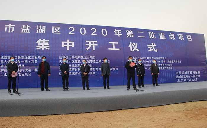 3月13日,運城市鹽湖區(qū)重點項目集中開工儀式在我公司承建的“運城南高速口景觀綠化工程”項目工地舉行,董事長康偉參加儀式并代表十四個重點項目的施工方作表態(tài)發(fā)言。